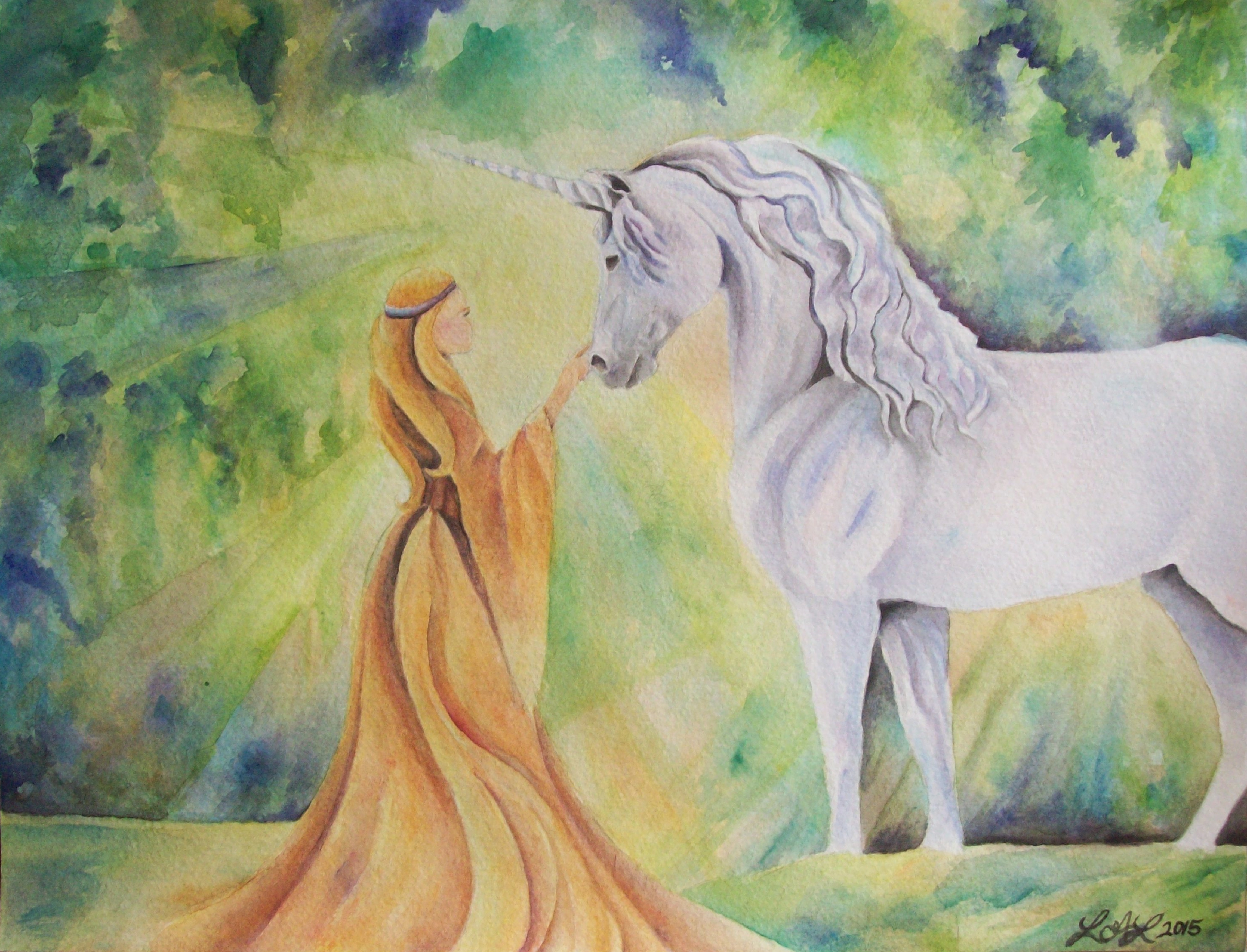 To me, the unicorn represents the soul of nature, and also the soul of horses. His body is large and powerful, but his spirit is noble, wise, and gentle. He will only show his true self to a person that is calm, honest, and does not wish to make use of him. He is to be appreciated, not to be owned. If you are luck enough to see this unicorn, it is a blessing to be cherished.